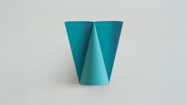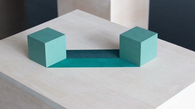 次元の平面と3次元の立体を組み、視覚が次元を跨ぐような構成表現を試みた。