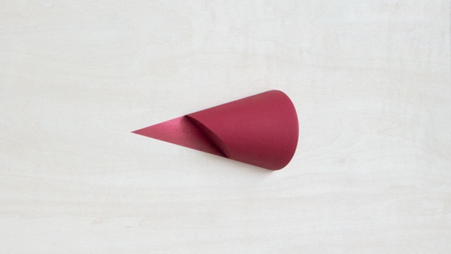 立体と、その立体に由来する平面とが、それぞれの点や線を共有することで、両者の関係はどちらの次元にも属さず、またその中間でもない、独特の空間性を生み出す。